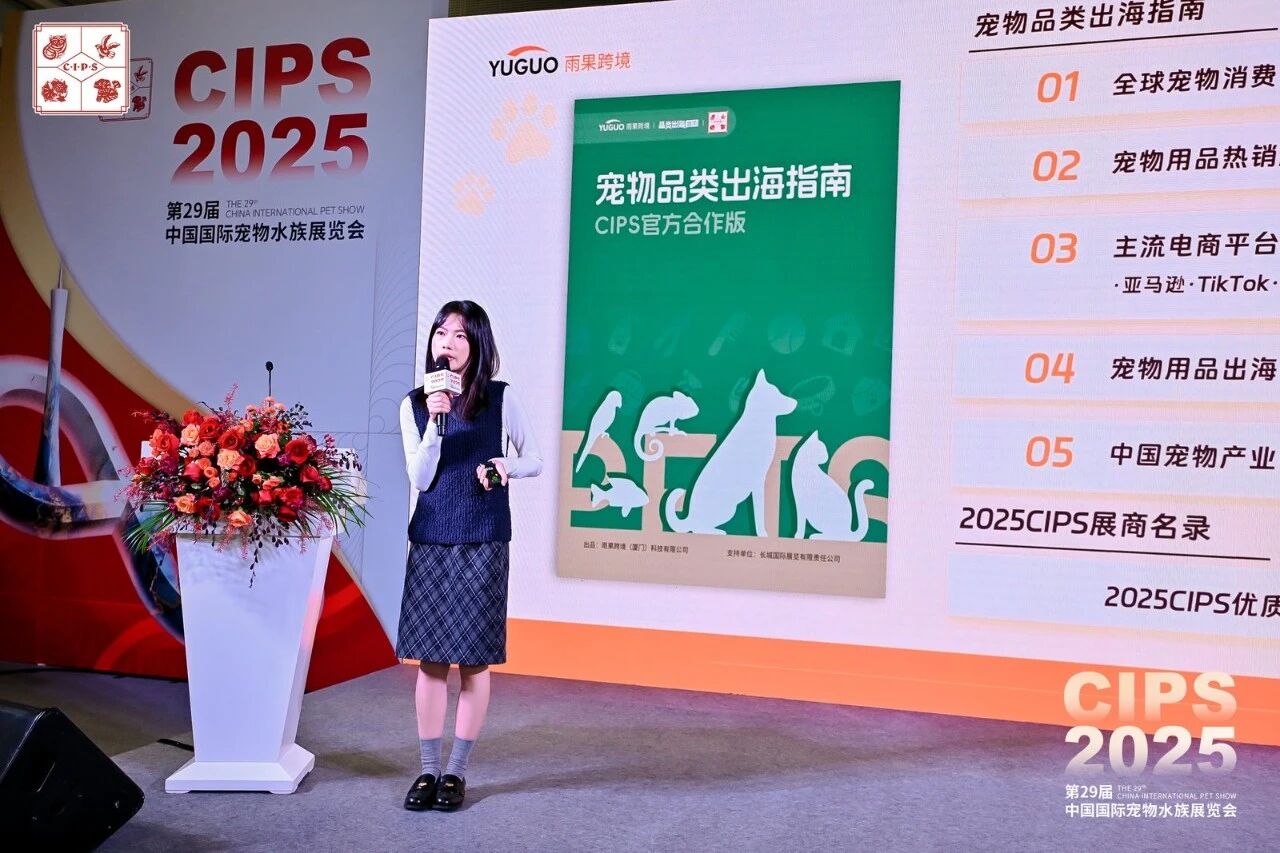 为解决宠物出海选品、渠道、合规等痛点,CIPS 联合雨果跨境推出《宠物品类出海指南 ——CIPS 官方合作版》,并于现场举办发布仪式。邀请长城国际展览有限责任公司董事长李劲、业务经理姜莹,雨果跨境创始人兼 CEO 翁耀雄、产业带 VP 张毅共同上台启动,四位嘉宾携手触碰启动屏,在全场倒数中完成发布。该指南汇集平台数据、趋势洞察、合规要点及优质供应链资讯,现场免费发放纸质版,成为宠物出海从业者的实战参考手册。