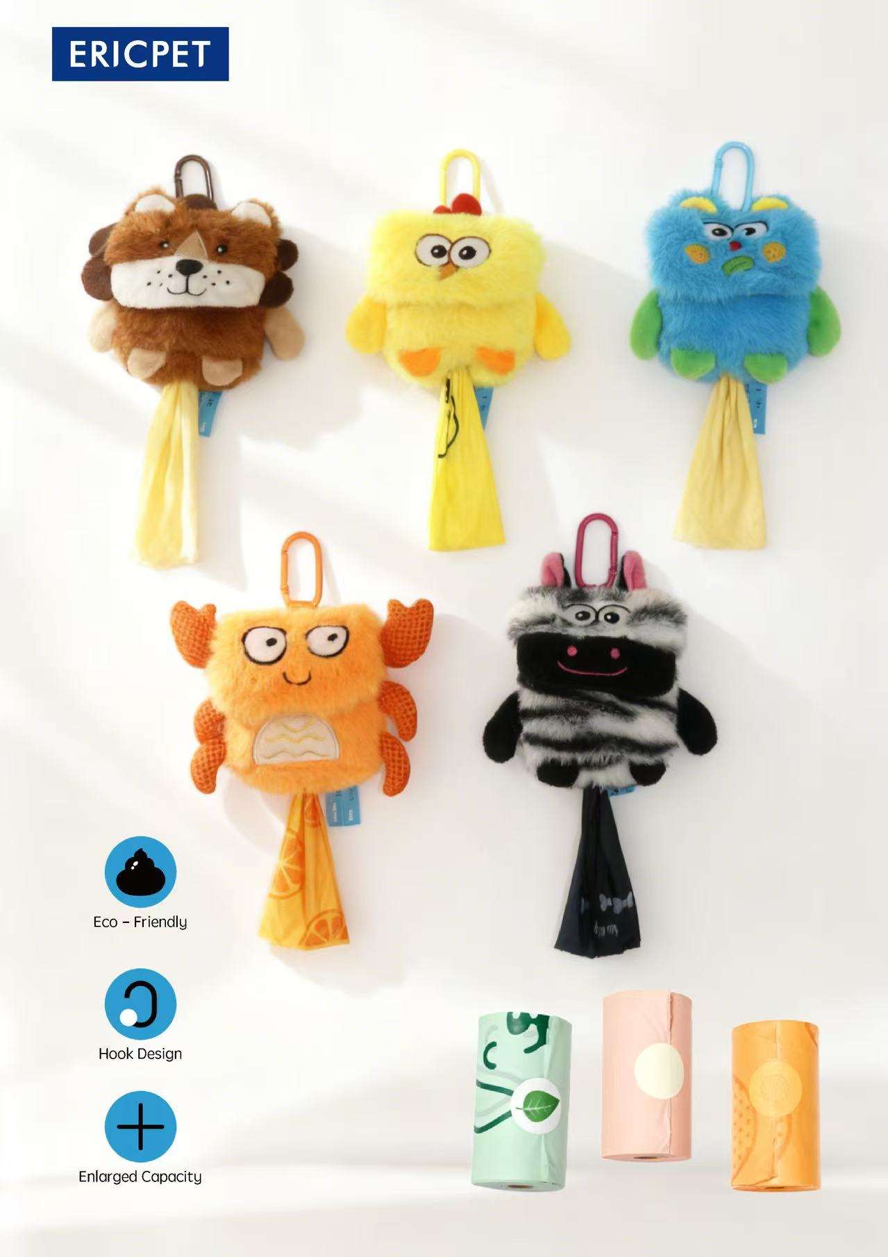 新品介绍:材质功能融合,弃用传统硬材质,以毛绒为外壳,兼具工具实用性与陪伴装饰性,避免摩擦宠物,还可做可爱造型;体验细节优化,设隐藏抽袋口防卡顿,轻量化配可调节挂带易携带,表层防泼水处理解决清洁难题;场景多元拓展,突破单一收纳功能,适配居家、遛弯等场景,部分款式带夹层实现拾便工具一体化收纳 。
