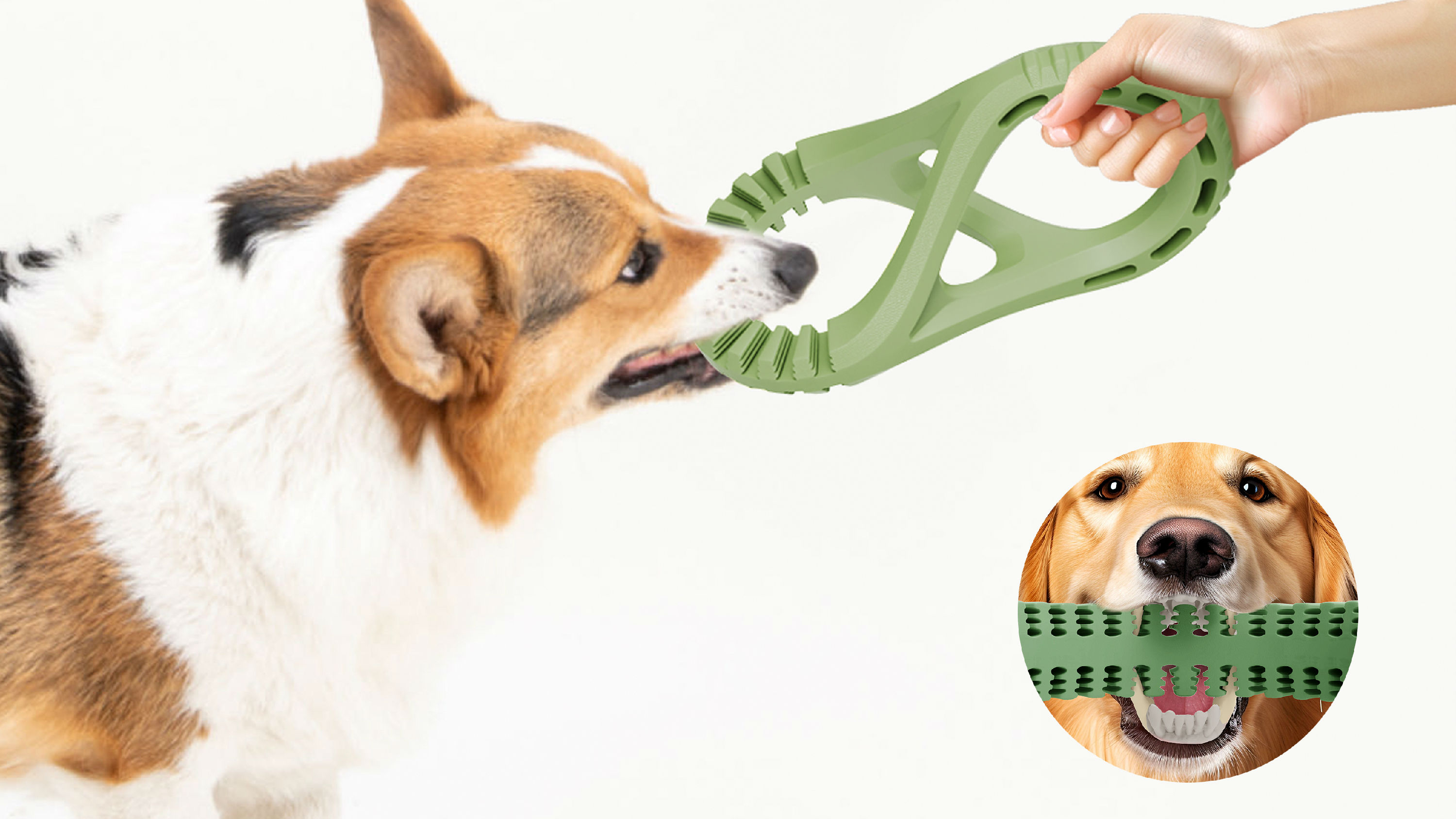 新品介绍:本设计通过创新四连杆拉力结构和仿鲨鱼齿梯度的洁齿结构,解决宠物狗玩乐与牙齿护理功能的咬胶玩具。帮助狗狗学习基础指令,强化服从性。通过游戏规则设定,培养狗狗的情绪控制和社交能力。消耗狗狗过剩精力,减少拆家等破坏行为。锻炼全身肌肉,特别是后肢和腰腹力量,适合敏捷训练需求。增强主人与狗狗的情感纽带,提升互动乐趣,帮助胆小狗狗建立自信,同时避免攻击性强的狗狗过度兴奋。