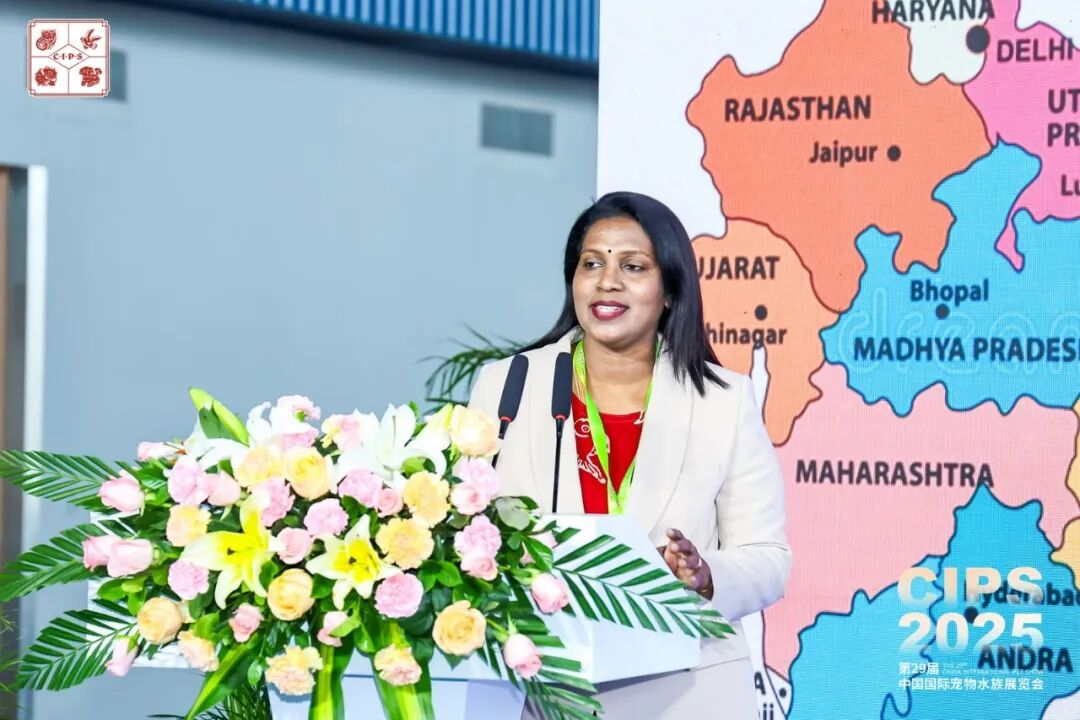 科钦科技大学工业渔业学院主任Dr. Mini Sekharan女士在会议上解析了印度观赏鱼产业。她指出,印度拥有丰富的水生生物多样性,超过350种本土物种具有商业价值,但国内市场(99%)以引进国际品种为主,出口市场(99%)依赖本土物种。