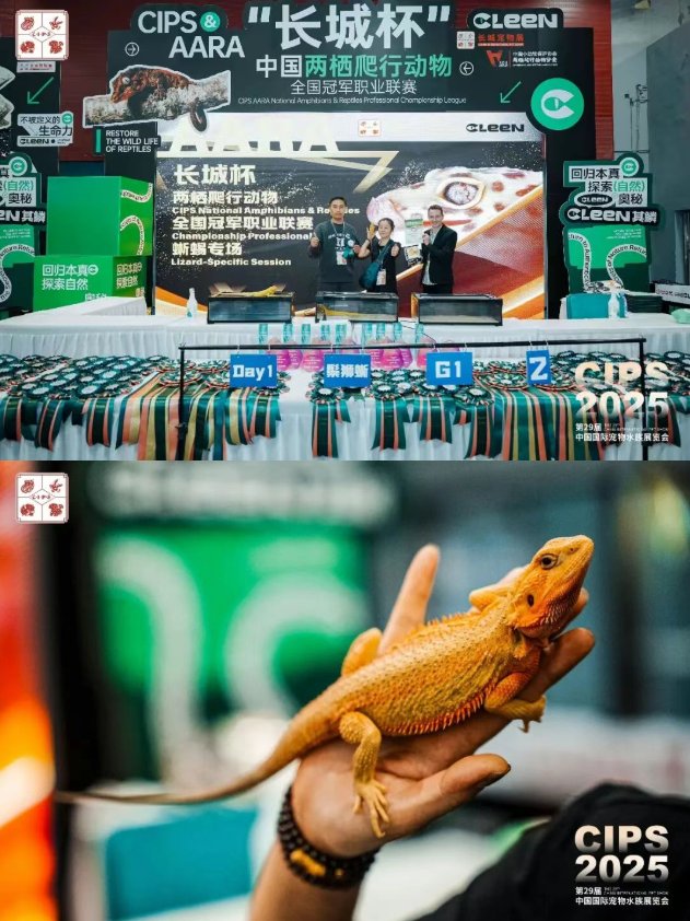 2025年11月16日,为期4天的第29届中国国际宠物水族展览会CIPS 2025(以下简称“长城宠物展”)在广州•中国进出口商品交易会展馆圆满落幕。作为全球宠物行业的风向标、亚洲规模最大的宠物水族专业展会,CIPS本次特设「“长城杯”AARA两栖爬行动物全国冠军联赛-蜥蜴专场」——由CIPS长城展冠名,CLEEN其鳞作为首席赞助,成为中国小动物保护协会两栖爬行动物分会2025年度赛事的收官之战。