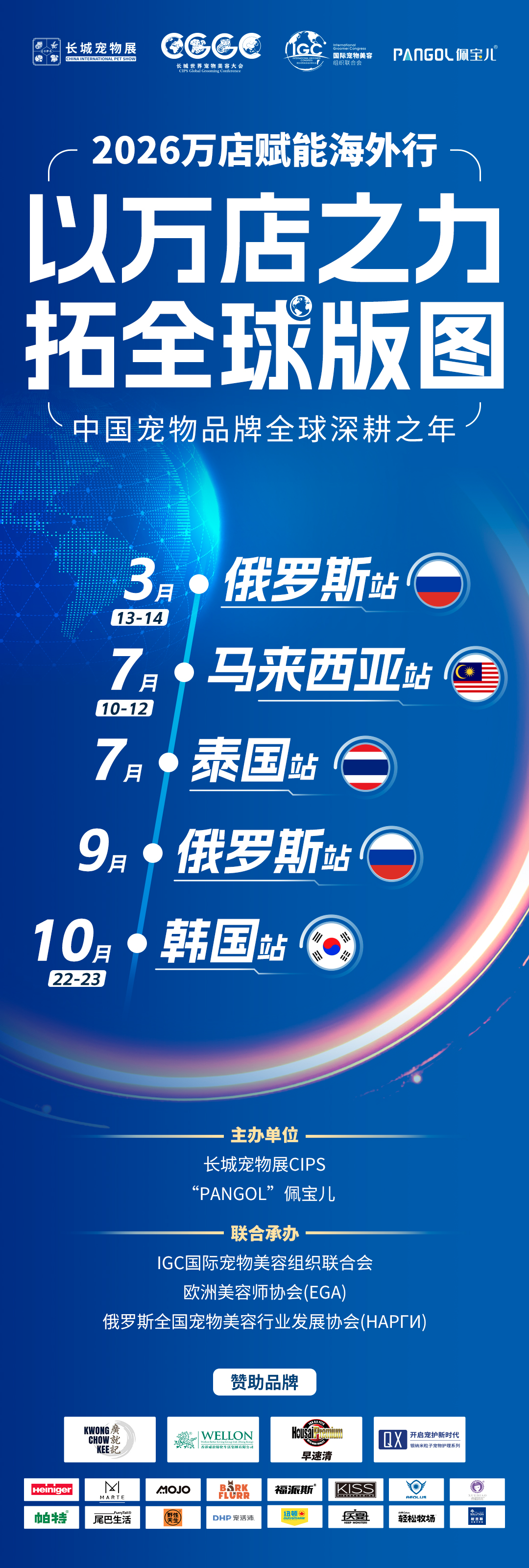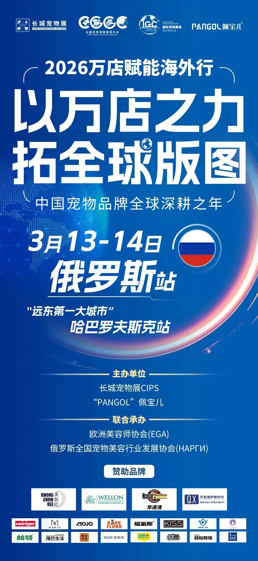 3月13日-14日,由长城宠物展CIPS、“PANGOL”佩宝儿联合主办;IGC国际宠物美容联合会、欧洲美容师协会(EGA)、俄罗斯全国宠物美容行业发展协会(НАРГИ)鼎力支持的“万店赋能海外行”2026年首站,在俄罗斯远东第一大城市——哈巴罗夫斯克圆满落幕。