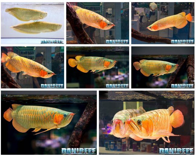 在视频中,还将看到超红龙鱼与过背金龙鱼。